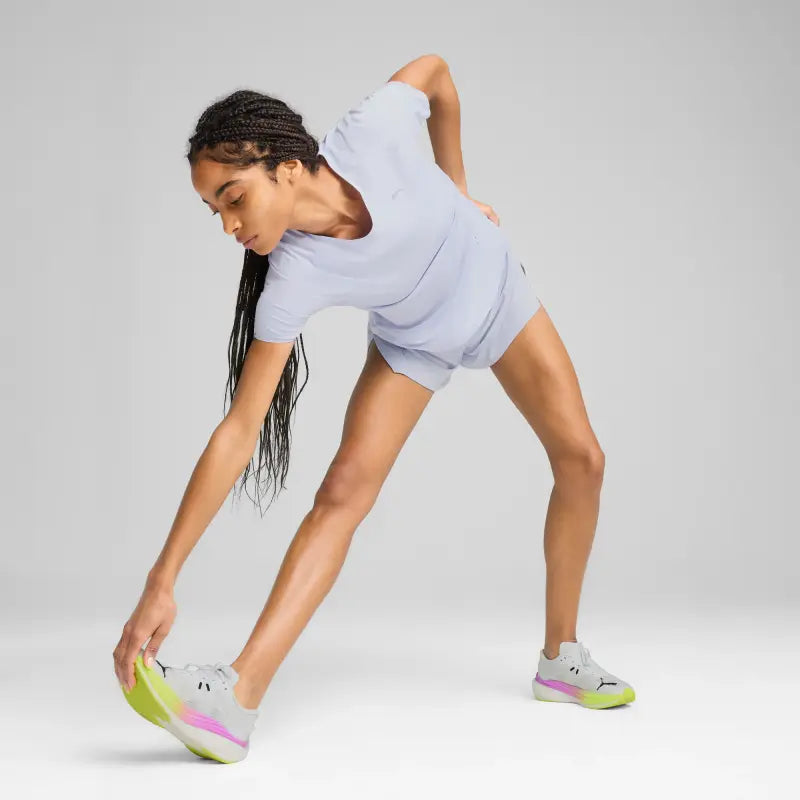 Feel the freedom to run your best with PUMA's softest fabric, CLOUDSPUN, featuring moisture-wicking dryCELL and 4-way stretch. Laser perforations enhance breathability, while bonded seams reduce friction. Thermoadapt technology keeps you cool as you push your limits.