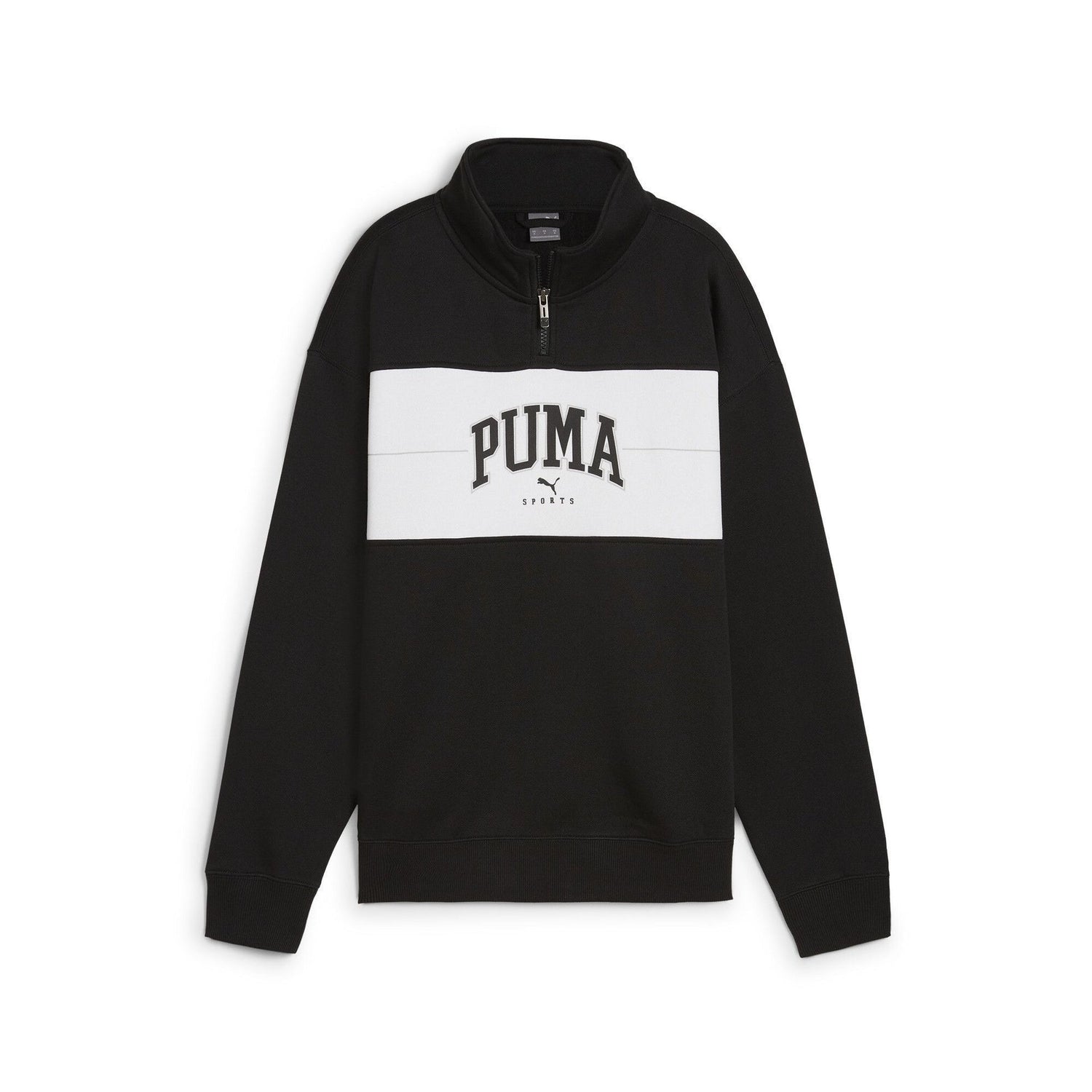 - Women's sweatshirt featuring a half-zip collar and a bold Puma logo across the chest. It offers a relaxed fit, making it suitable for casual outings or lounging.