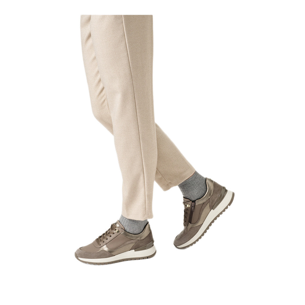 - Modern sneaker for women that puts a contemporary dynamic spin on a sporty aesthetic. Crafted from supple nappa with suede details, this refined version comes in a mixture of brown and sandy yellow. Desya is the perfect way to enhance everyday city outfits with a characterful touch.