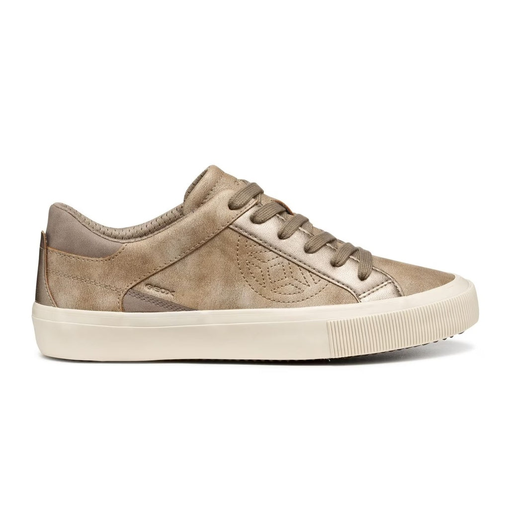 - Elevate your everyday look with the Geox Emmeleny women's sneakers in crisp white. These court-style sneakers blend practicality with subtle flair, showcasing delicate glittery fabric accents and tasteful embossed branding. Crafted from a premium combination of leather and synthetic materials, they offer both durability and style. The Emmeleny's impressively lightweight construction and comfortable textile-blend lining make these the perfect choice for all-day wear, while the reliable rubber sole provides dependable traction for your daily adventures.