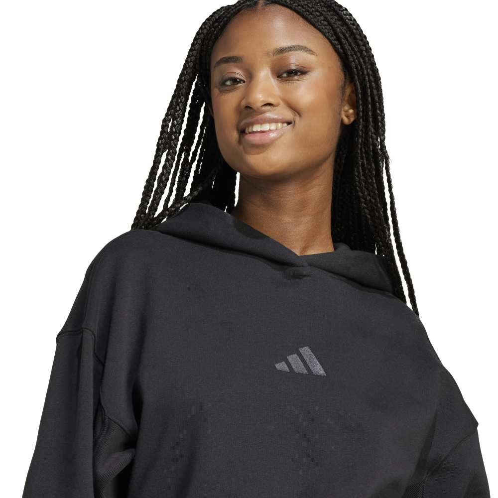 - Experience comfort and confidence with the All SZN French Terry Loose Hoodie for women. Made with Better Cotton, this loose-fit hoodie offers everyday basics that elevate your style and comfort. Features include a 2-piece double layered hood, dropped shoulders, and a rib cuff for an elevated look. An embroidered sign off on the sleeve adds a touch of adidas authenticity.