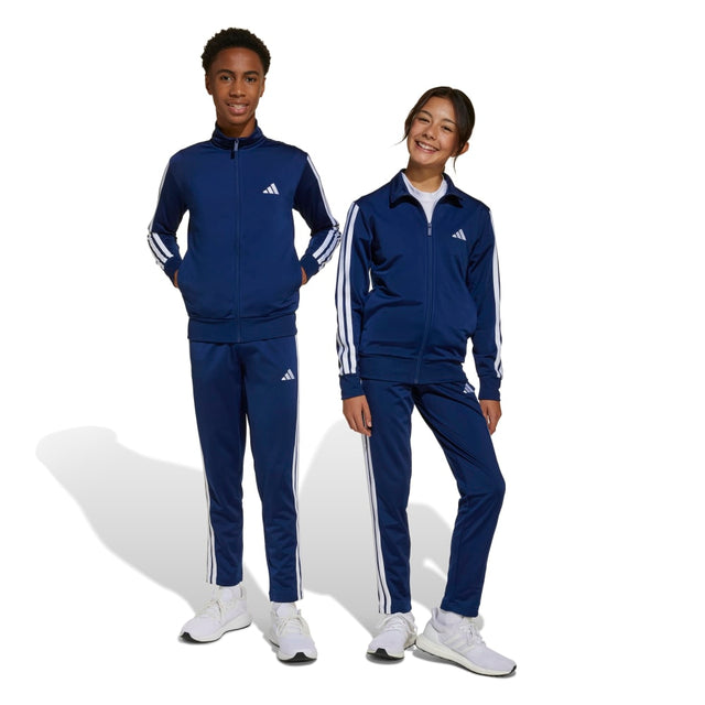 - Introducing the Essentials Tracksuit, a unisex ensemble that's as comfortable as it is stylish. Made entirely with recycled materials, this modern design offers versatile styles for an easy, everyday look. The regular fit top and bottom are crafted from knit construction, ensuring a comfortable fit. Equipped with Climacool technology, this tracksuit wicks away sweat, keeping you cool, dry, and ready for any adventure. It's more than just a tracksuit, it's a commitment to sustainability and style.