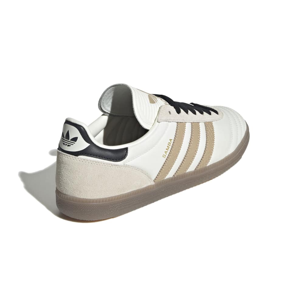 - The adidas Samba shoes were introduced in the decades ago as an indoor football training shoe and soon moved outdoors to icy ground pitches. This pair carries that legacy into the present day. The leather upper, animal print-inspired debossed 3-Stripes and suede details are a nod to archival Samba style. The look is finished with a rubber outsole to keep you moving in comfort.
