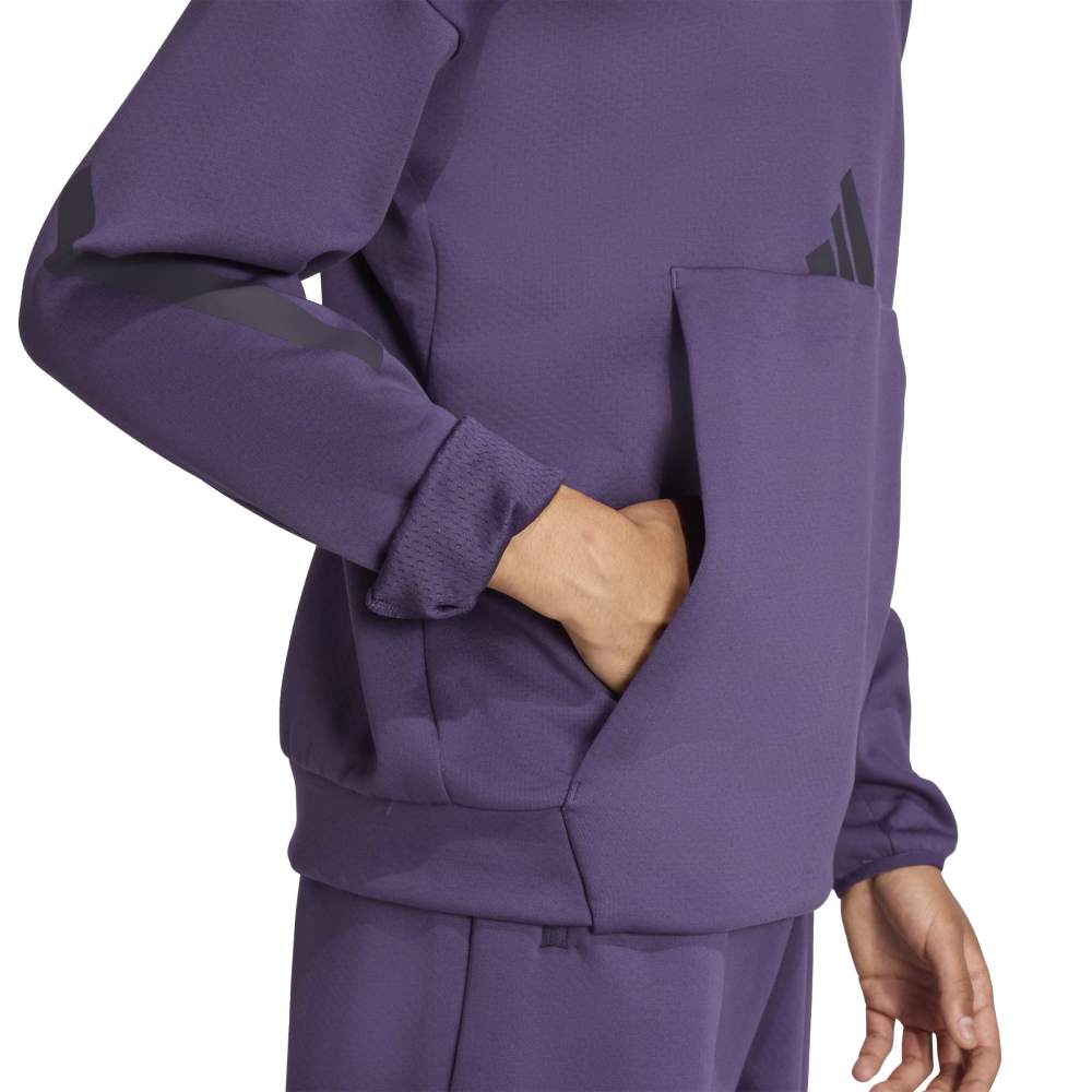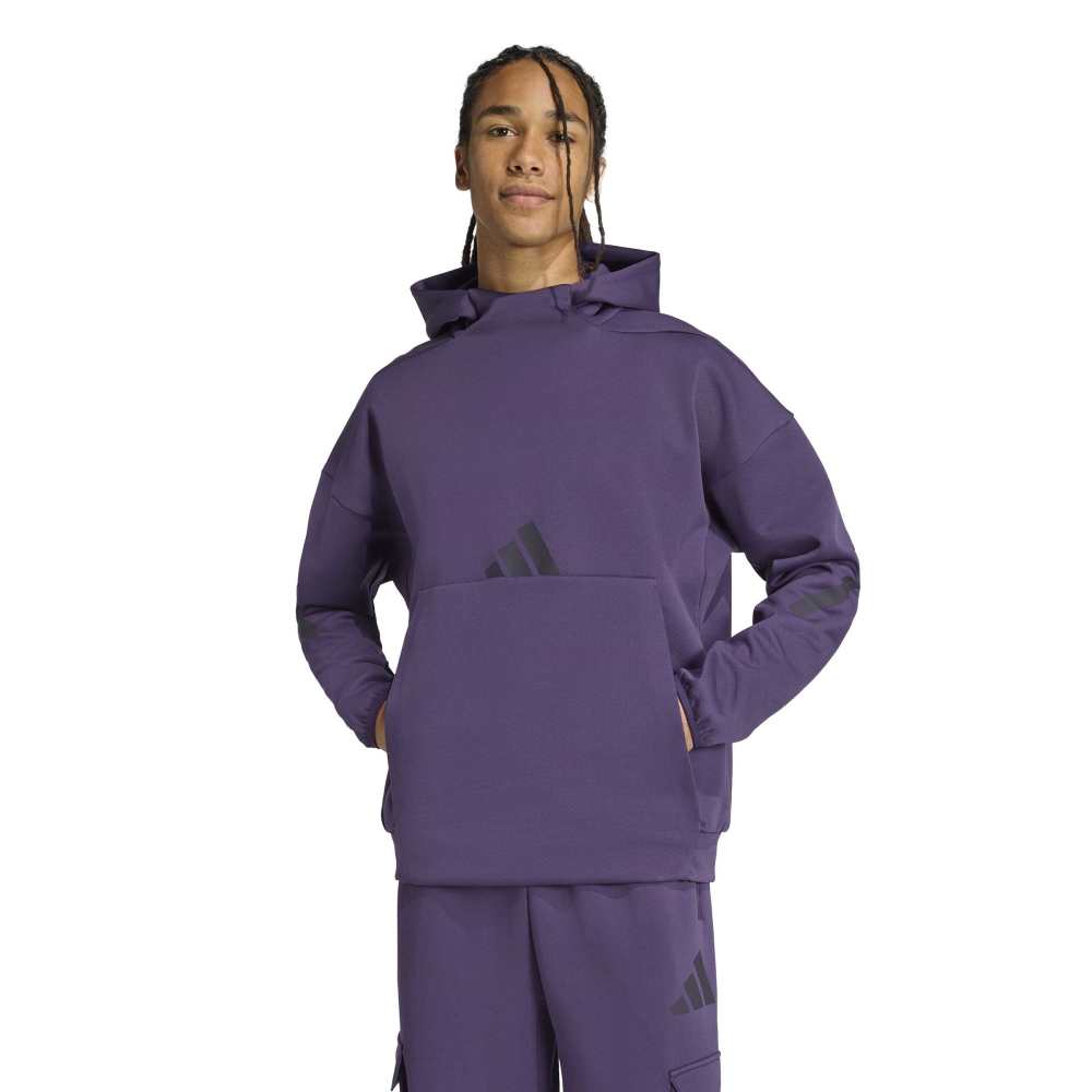 - Embrace the spirit of camaraderie with the Z.N.E. Hoodie, designed for men. Crafted with a sustainable blend of 57% recycled Polyethylene Terephthalate and 43% Better Cotton, this loose fit hooded sweatshirt is a testament to adidas' commitment to sustainability. The matte rubber print three-bar logo adds a touch of adidas' iconic branding, while the 330g Primeknit spacer fabric ensures a soft hand feel and a technical aesthetic. This hoodie is more than just a piece of clothing - it's a symbol of belonging and unity in sport.