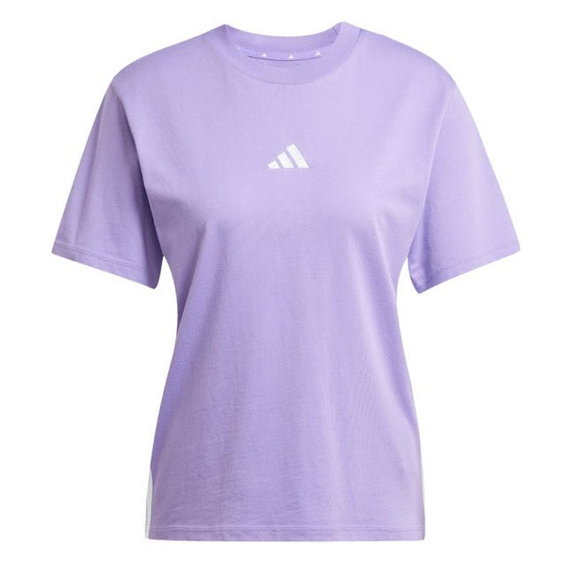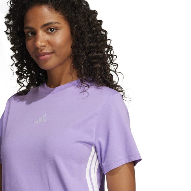 - Introducing The Essentials 3-Stripes Cotton T-Shirt For Women. This Regular Fit, Short-Sleeved T-Shirt Is Made Entirely Of Better Cotton In A Knit Construction, Offering A Modern Fit With Traditional Three Stripes Branding. The Slim Fit And Small Adidas Logo On The Left Side Chest Add To Its Charm. Supporting Sustainable Cotton Farming, This Piece Is Part Of Our Ambition To End Plastic Waste - A Testament To Style Meeting Sustainability.